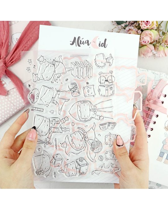 Ensemble de 28 tampons et 14 dies assortis.Taille des personnages 4-8cmTampon clear en polymère de haute qualité. Fabriqué en Europe.Dim.15x21cm