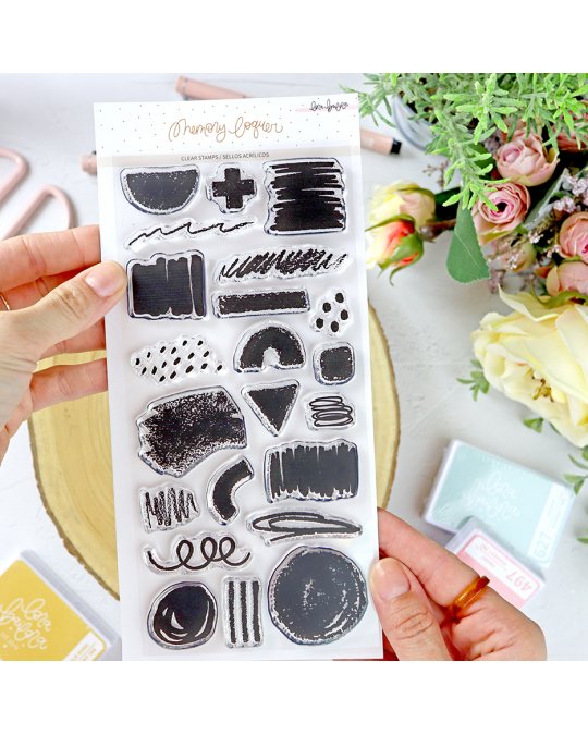 Planche de 22 tampons sans résine, acrylique, caoutchouc ou silicone. Hautement transparent et résistant.