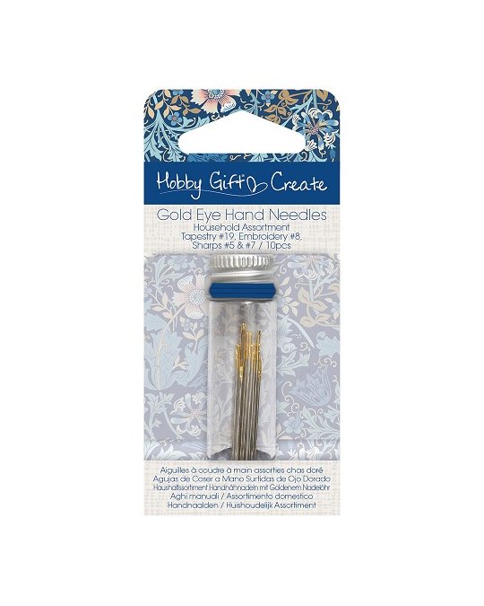 Comprend : 1 aiguille à tapisserie n°19, 3 aiguilles à coudre n°5, 3 aiguilles à coudre n°7 et 3 aiguilles à broder n°8.