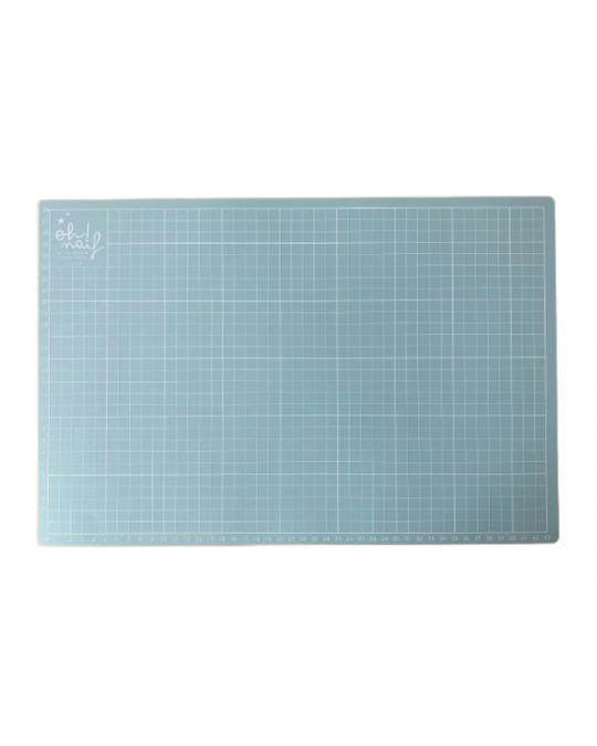 Tapis de coupe double face avec des mesures en centimètres d'un côté et en centimètres et pouces de l'autre.