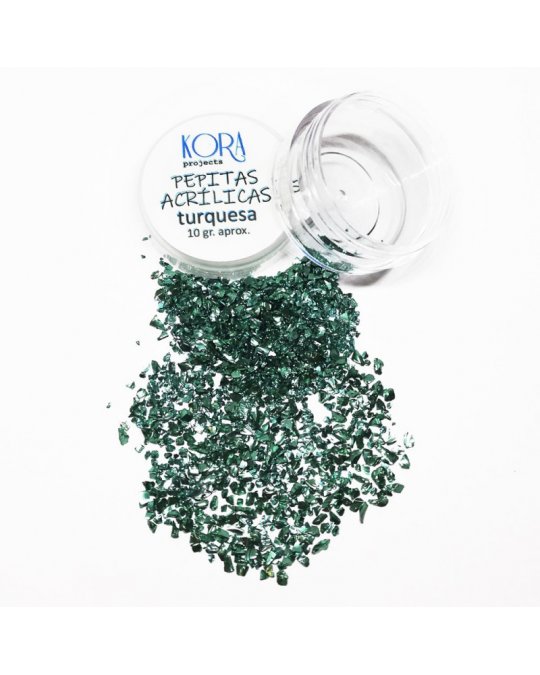 Pépites en acrylique de 1 à 4 mm. Poids 10g. Couleur turquoise. Leur taille, leur texture et leur brillance exceptionnelles rendent ces petites pépites parfaites pour remplir et faire briller nos shakers.