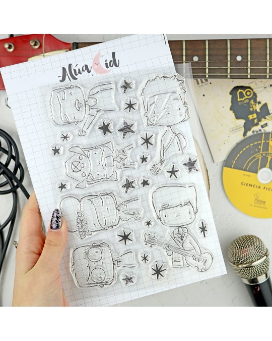 Collection En Directo - Alúa Cid Planche de 25 tampons clear en polymère de haute qualité. Fabriqué en Europe. Taille des personnages 7-9cm Format A5 (15x21cm)
