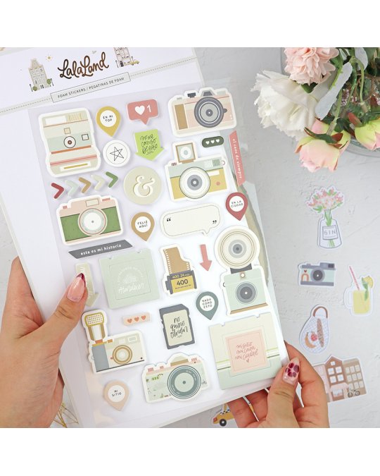 Collection Lala Land - Lora BailoraPlanche d'autocollants mousse. 34 stickers. Format 16x25cm