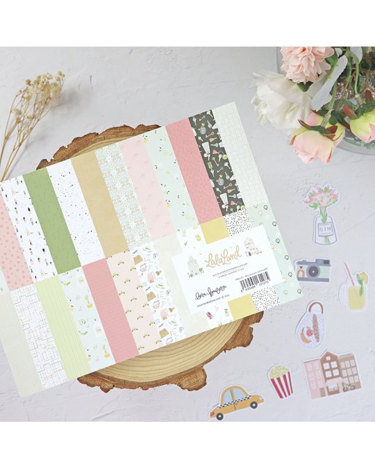 Collection Lala Land - Lora BailoraBloc de 24 papiers 190g imprimés recto.Format 6x8" (15x20cm)