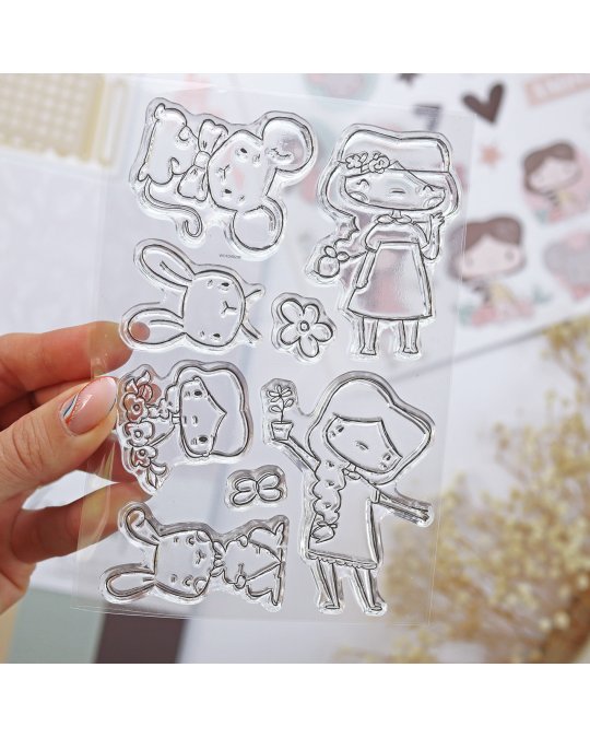 Collection Libertad - Alúa Cid Planche de 8 tampons clear en polymère de haute qualité. Fabriqué en Europe. Taille des personnages 4 à 6,5cm Format A6 (10x15cm)