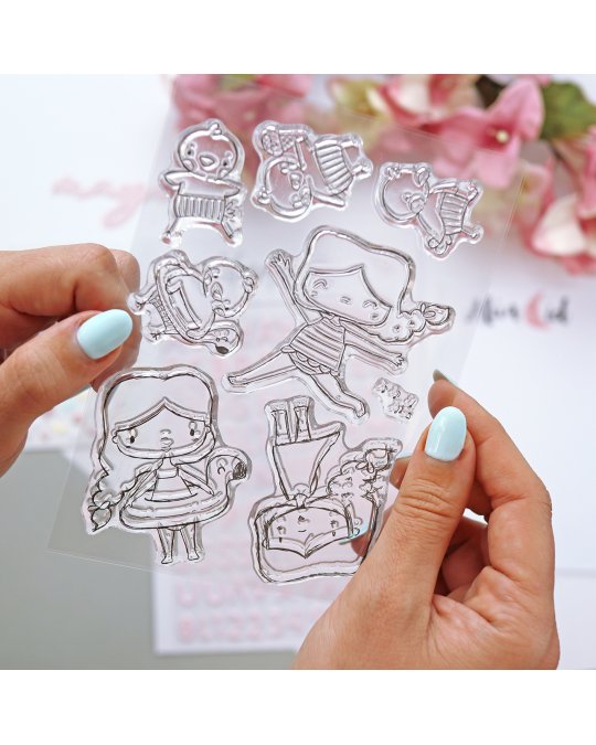 Collection Libertad - Alúa Cid Planche de 8 tampons clear en polymère de haute qualité. Fabriqué en Europe. Taille des personnages 4 à 6,5cm Format A6 (10x15cm)