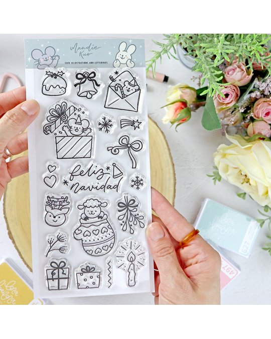 Planche de 18 tampons sans résine, acrylique, caoutchouc ou silicone. Hautement transparent et résistant.