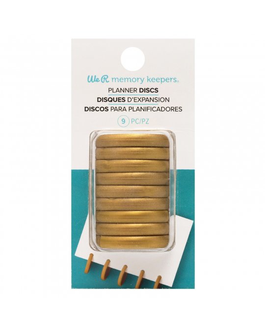 Ensemble de neuf disques de reliure dans une finition dorée.