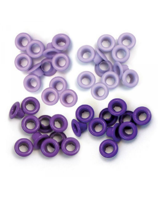 Assortiment d'œillets, finition mat. Ce lot contient 60 oeillets (15 oeillets de 4 couleurs différentes).