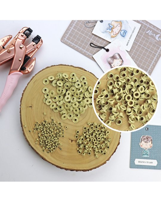Les œillets minis sont dotés d'un col de 3mn avec une pointe nervurée permettant une fixation par écrasement sur votre papier cartonné.
