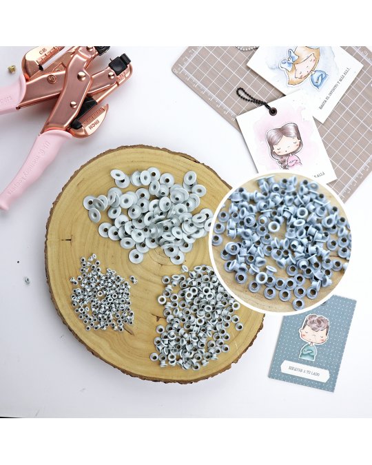 Les œillets minis sont dotés d'un col de 3mn avec une pointe nervurée permettant une fixation par écrasement sur votre papier cartonné.