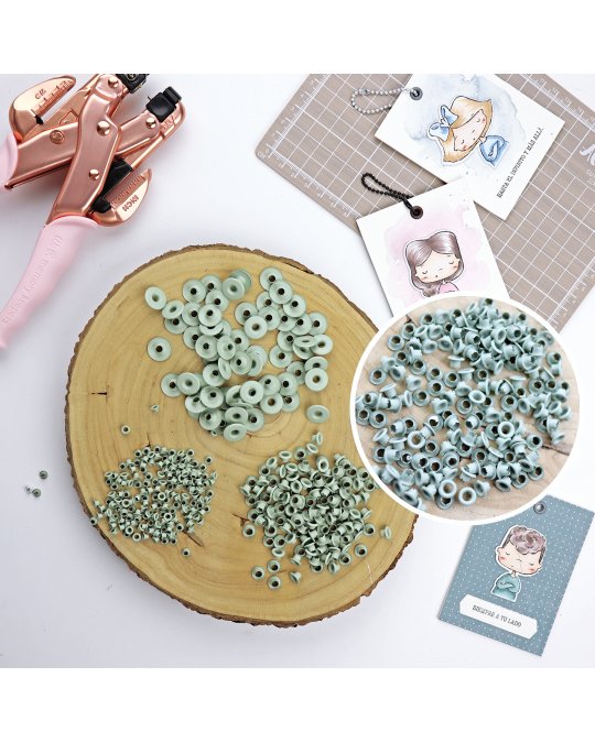 Les œillets minis sont dotés d'un col de 3mn avec une pointe nervurée permettant une fixation par écrasement sur votre papier cartonné.