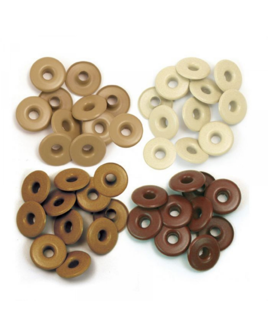 Assortiment d'œillets avec un bord large, finition mat. Ce lot contient 40 oeillets (10 oeillets de 4 couleurs différentes).
