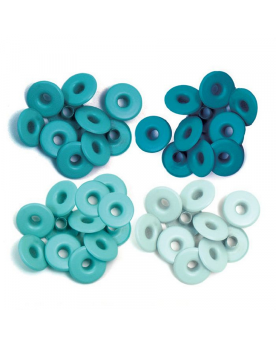 Assortiment d'œillets avec un bord large, finition mat. Ce lot contient 40 oeillets (10 oeillets de 4 couleurs différentes).