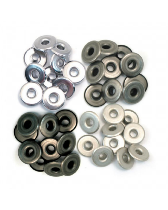 Assortiment d'œillets avec un bord large de couleur métallique. Ce lot contient 32 oeillets (8 oeillets de 4 couleurs différentes).