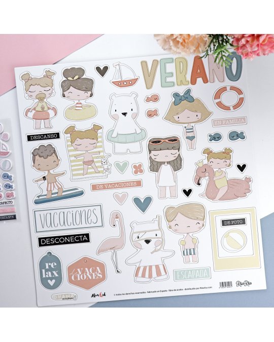 Collection Ohana en la playa - Alúa CidPlanche cartonnée prédécoupée. Illustrations autocollantesFormat 12x12" (env.30,5cm)