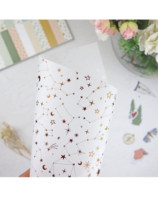 Collection Lala Land - Lora Bailora | PerseidasFeuille de papier calque, imprimé foil doré. Motif Pluie d'étoiles.Format 12x12" (env.30,5cm)