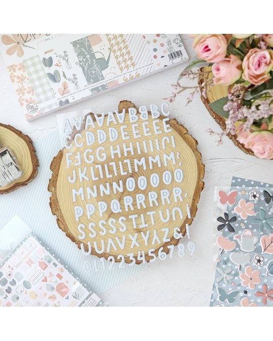Planche d'autocollants puffy : alphabet bleu layette