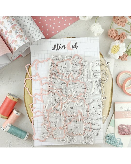 Ensemble de 24 tampons et 9 dies assortis dont 9 personnages.